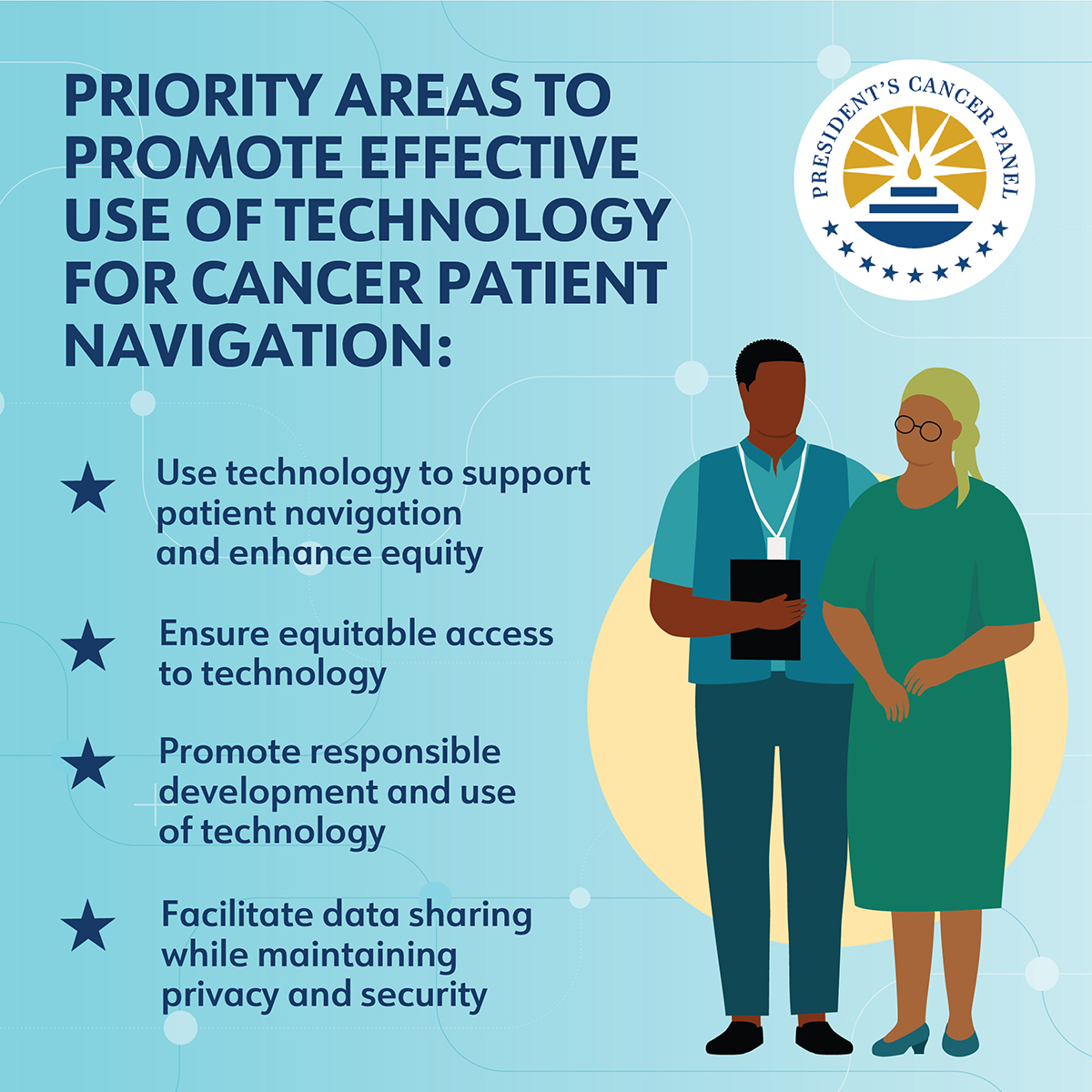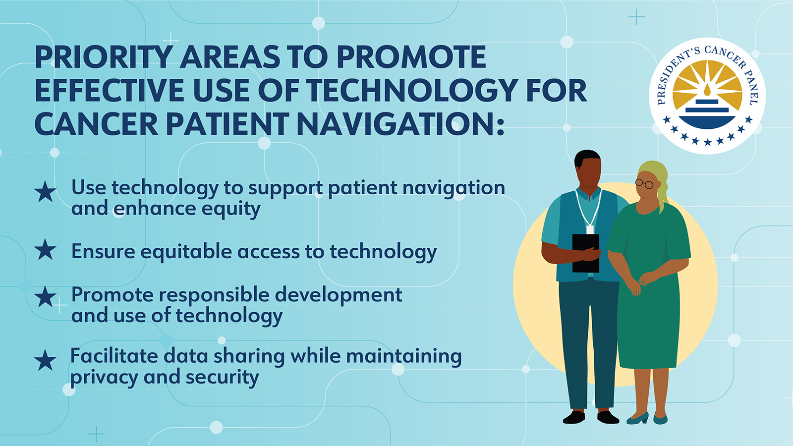 To help combat cancer health disparities, the @President’s Cancer Panel has focused on opportunities to use technology to support patient navigation and improve access to care. In their latest report, the Panel outlines specific priorities and recommendations for the responsible development and use of technology to enhance cancer patient navigation.