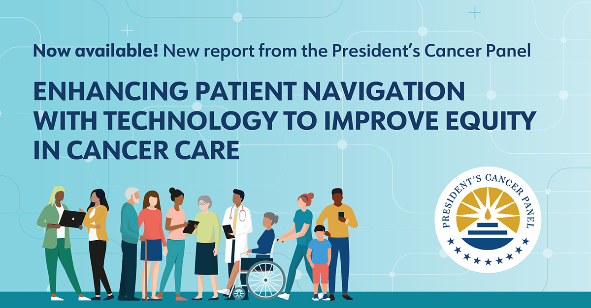 The President’s Cancer Panel’s latest report, Enhancing Patient Navigation with Technology to Improve Equity in Cancer Care, offers four priorities and related recommendations for the responsible development and use of technology to extend the reach of patient navigation to support more patients throughout their cancer care journey.